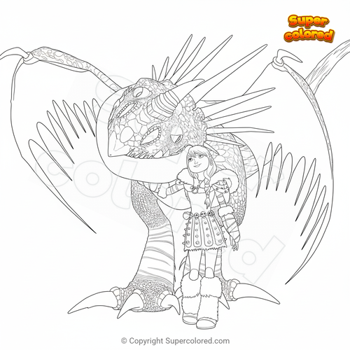Ausmalbild Astrid umarmt Sturmpfeil (Drachenzähmen leicht gemacht)
