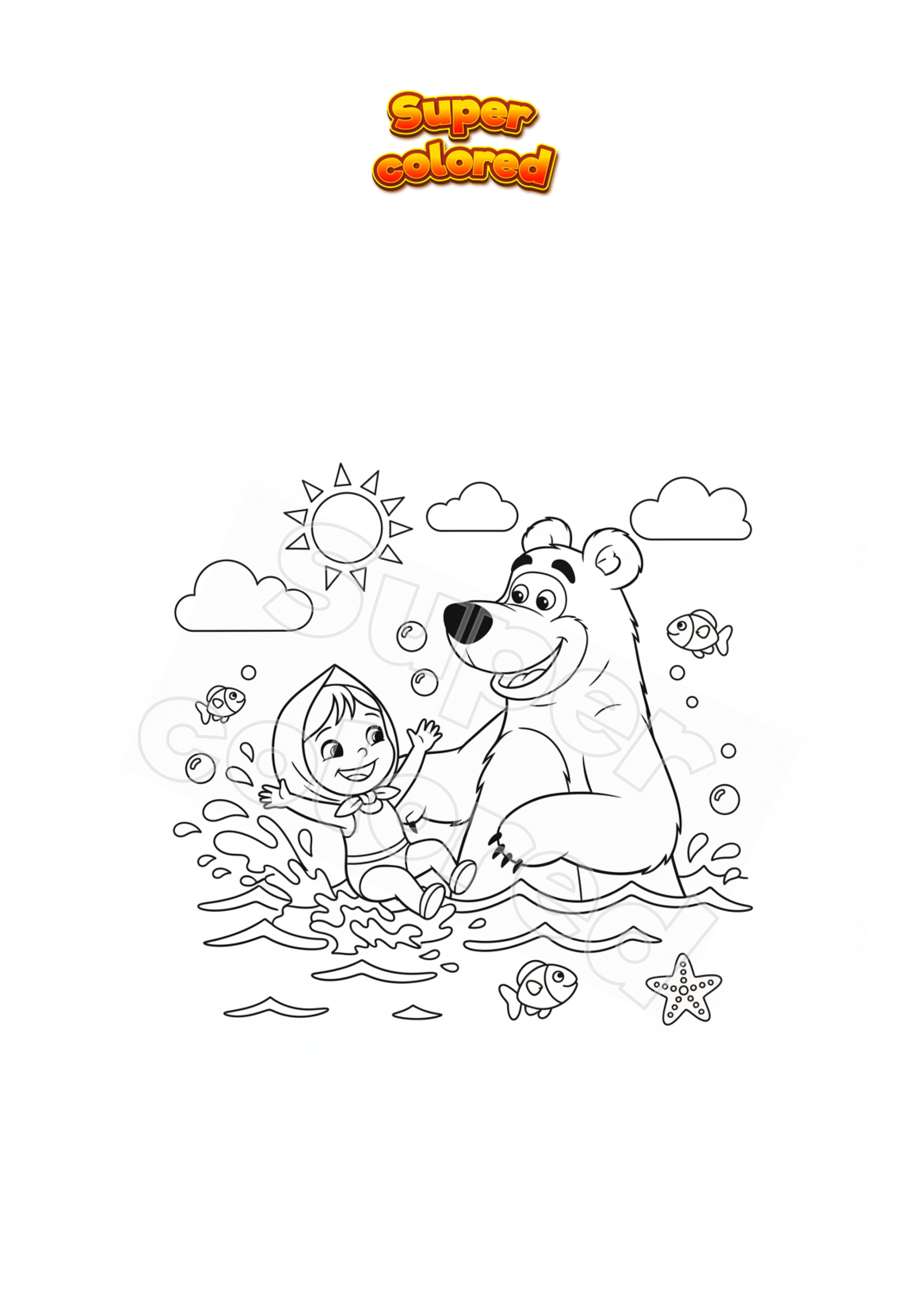 Ausmalbild Die fröhliche Mascha in Mascha und der Bär