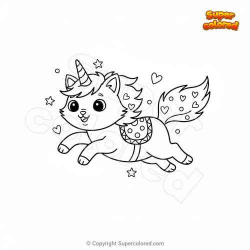 Ausmalbild Einhornkatze springt