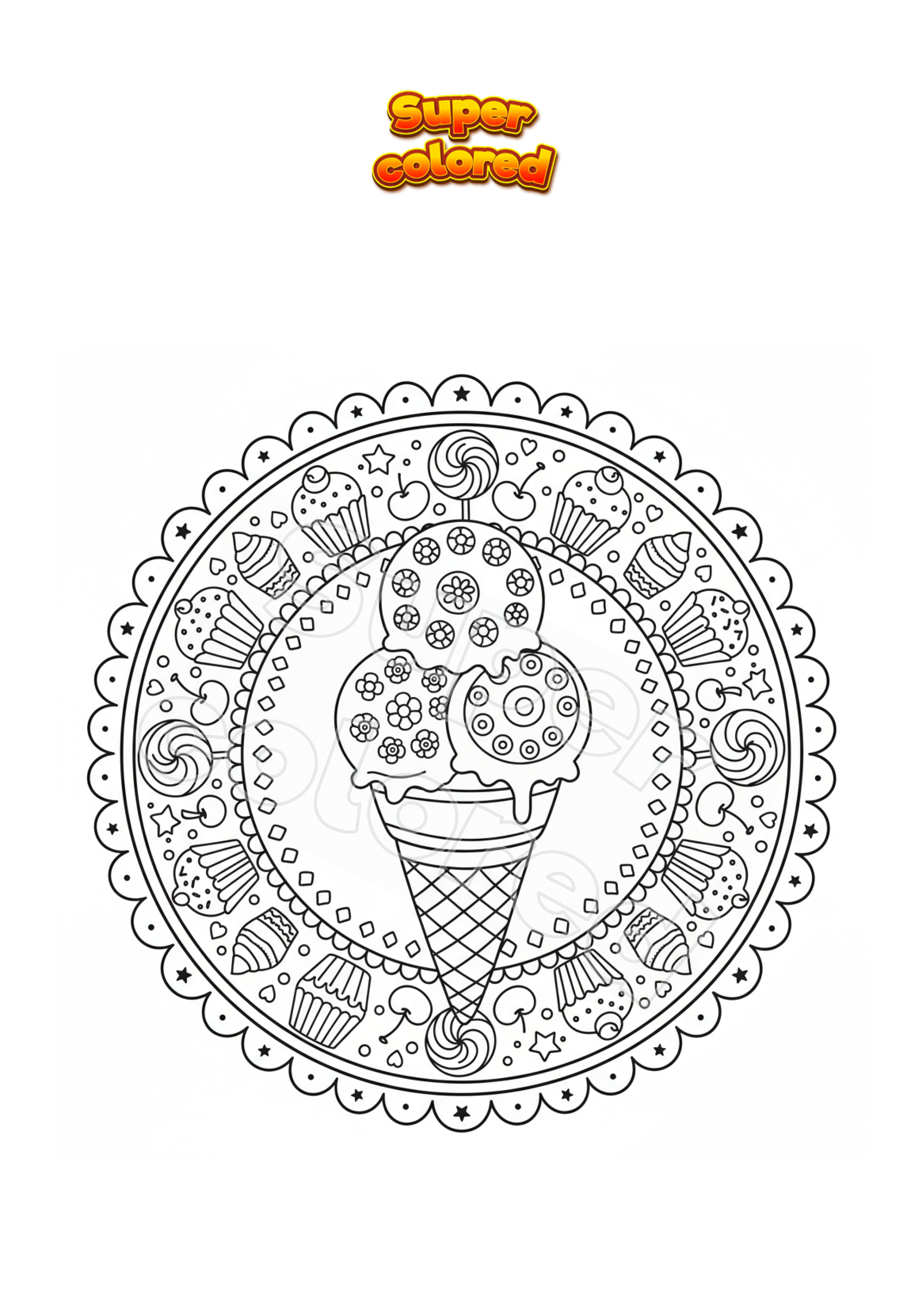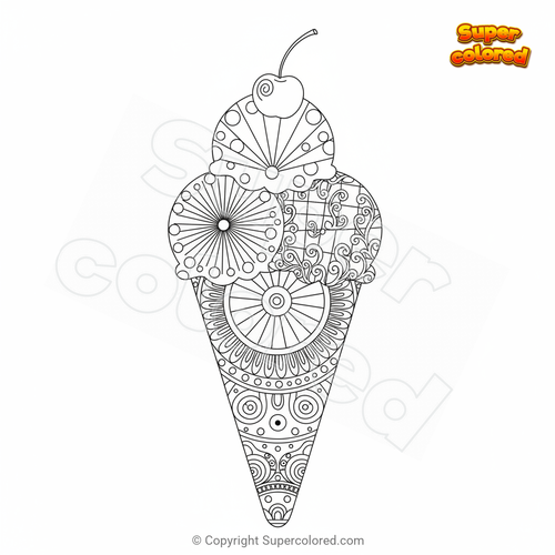 Ausmalbild Eistüte Mandala Zentangle