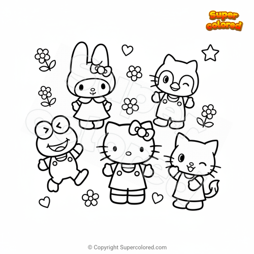 Ausmalbild Hello Kitty und ihre Freunde