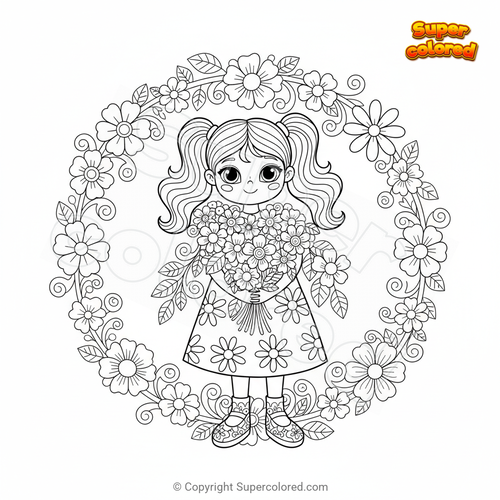 Ausmalbild Mädchen mit Blumen