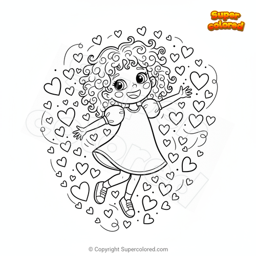 Ausmalbild Mädchen mit vielen kleinen Herzen