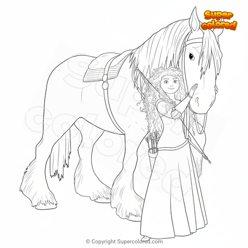 Ausmalbild Merida mit dem Pferd