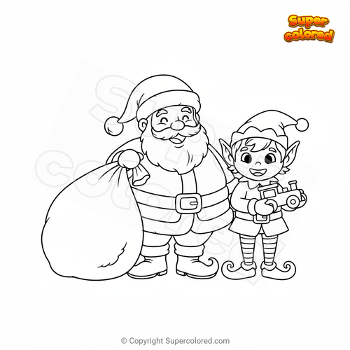 Ausmalbild Weihnachtsmann mit Elf