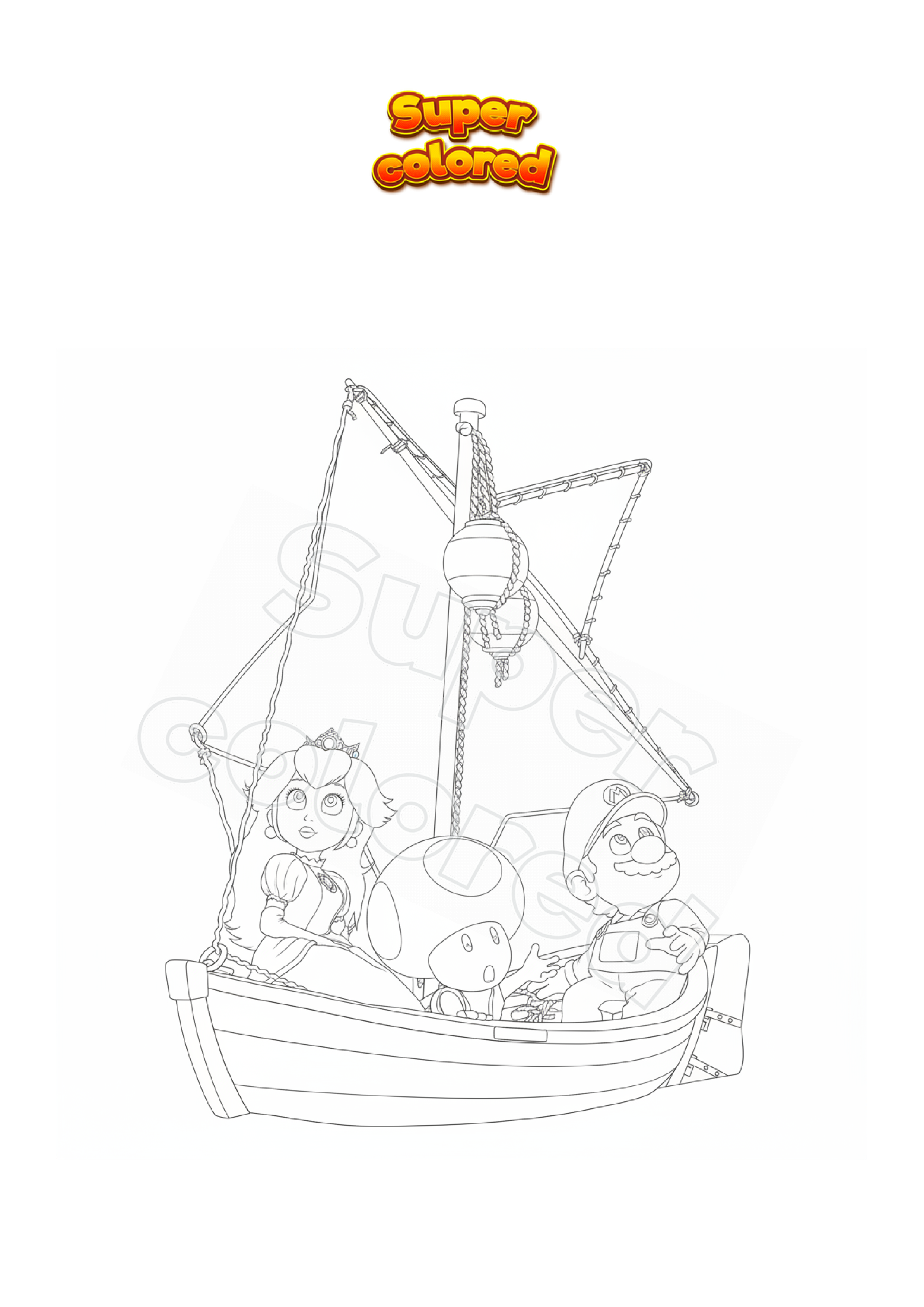 The drawings are free and printable in an A4 format not filling the entire page, crafted to make coloring easy without needing too many colors or too much time. This format is perfect for families and young artists to effortlessly complete each illustration, enjoying characters like Yoshi, Frog Luigi, and Toad on the boat, immersing themselves in the magical and adventurous atmosphere of the Super Mario Galaxy world.