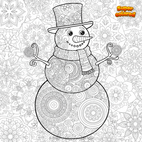 Coloring page Big Snowman Mandala Zentangle