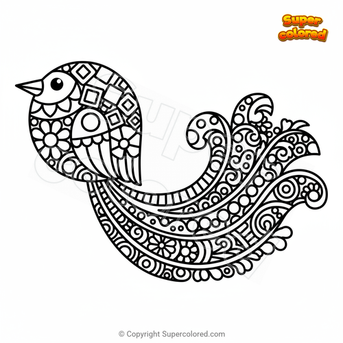 Coloring page Bird with Long Tail Mandala Zentangle