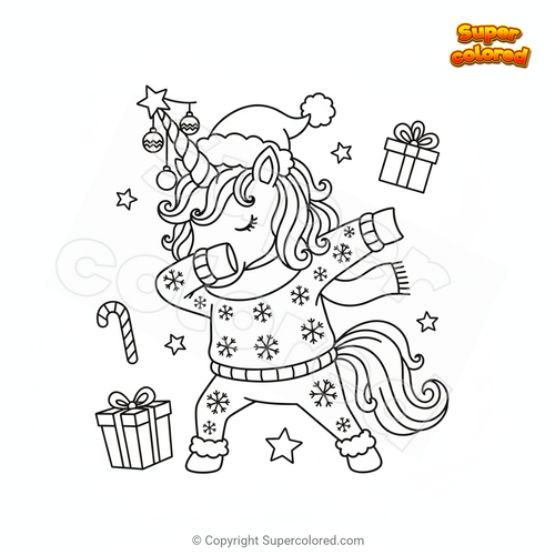 Coloring page Christmas unicorn dabbing