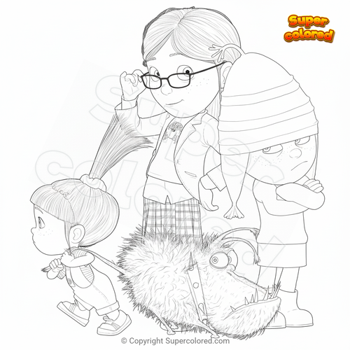 Coloring page Despicable Me Kids with the Dog