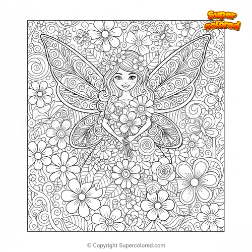 Coloring page Fairy with flowers Mandala Zentangle