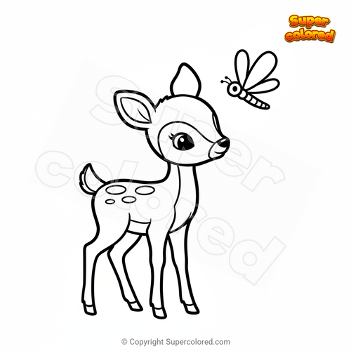 Coloring page Fawn with dragonfly