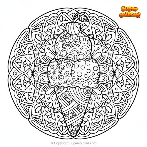Coloring page Great Ice Cream Mandala Zentangle