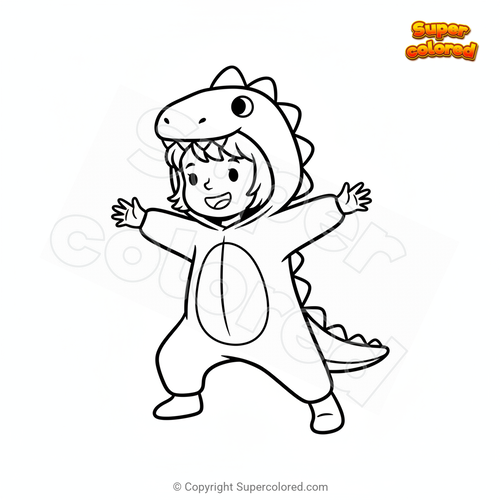 Coloring page Little girl disguised as a dinosaur