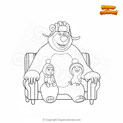 Coloring page Masha the Bear and the Penguin