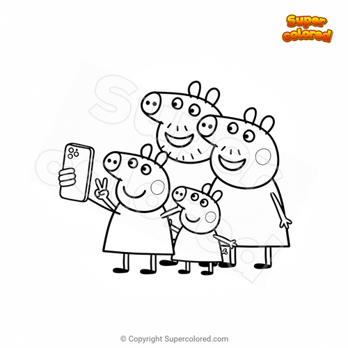 Coloring page Peppa Pig Selfie