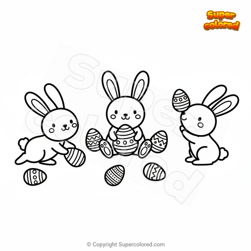 Coloring page Rabbits with Easter eggs