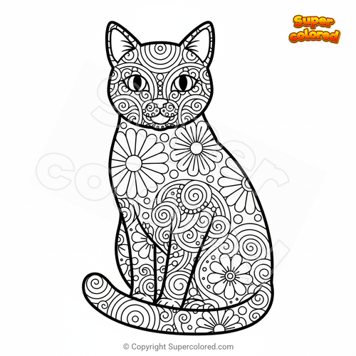 Coloring page Sitting Cat Mandala Zentangle