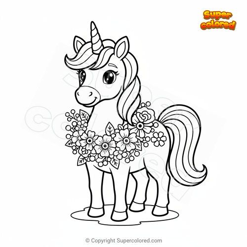Coloring page Unicorn with garland