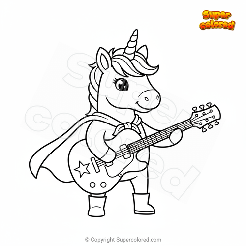 Coloring page Unicorn with guitar