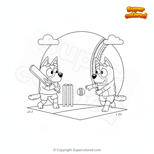 Dibujo para colorear Bluey juega al cricket con Bingo