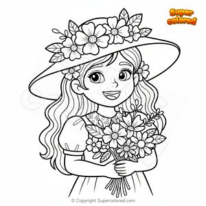 Niña con sombrero y flores