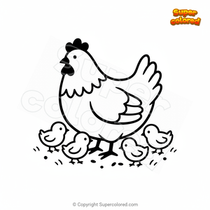 Dibujo para colorear Gallina con pollito