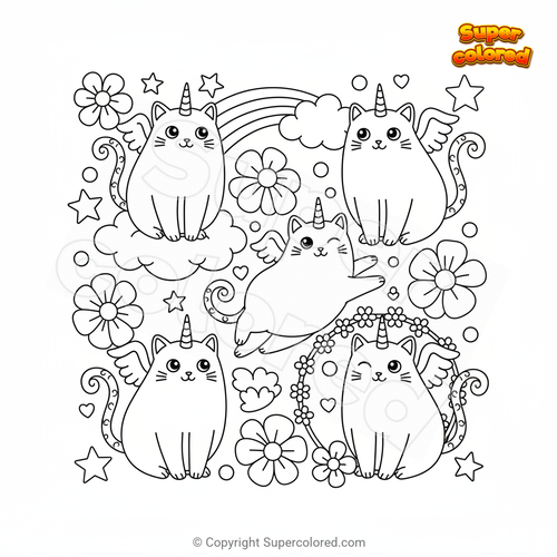 Dibujo para colorear Gatos unicornio
