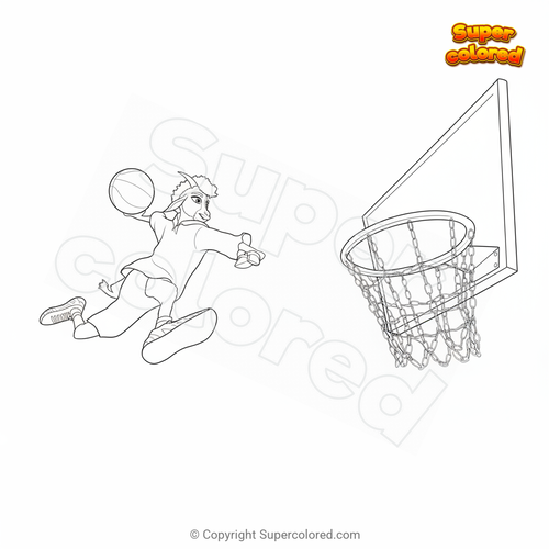 Dibujo para colorear Goat hace un mate mientras juega al baloncesto