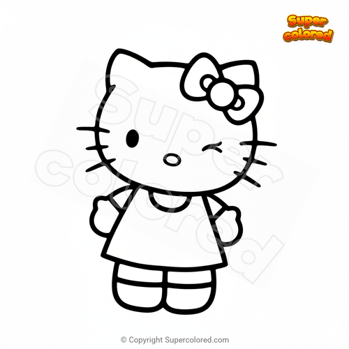 Dibujo para colorear Hello Kitty guiñando un ojo