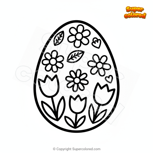 Dibujo para colorear Huevo de pascua con flores