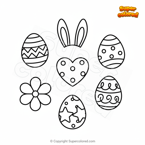 Dibujo para colorear Huevos de pascua de diferentes formas.
