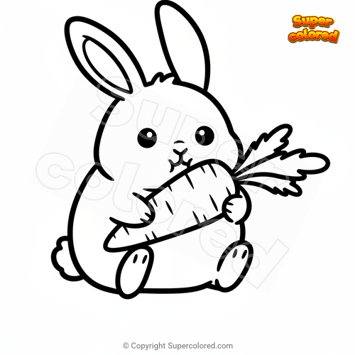 Dibujo para colorear Lindo conejito con zanahoria