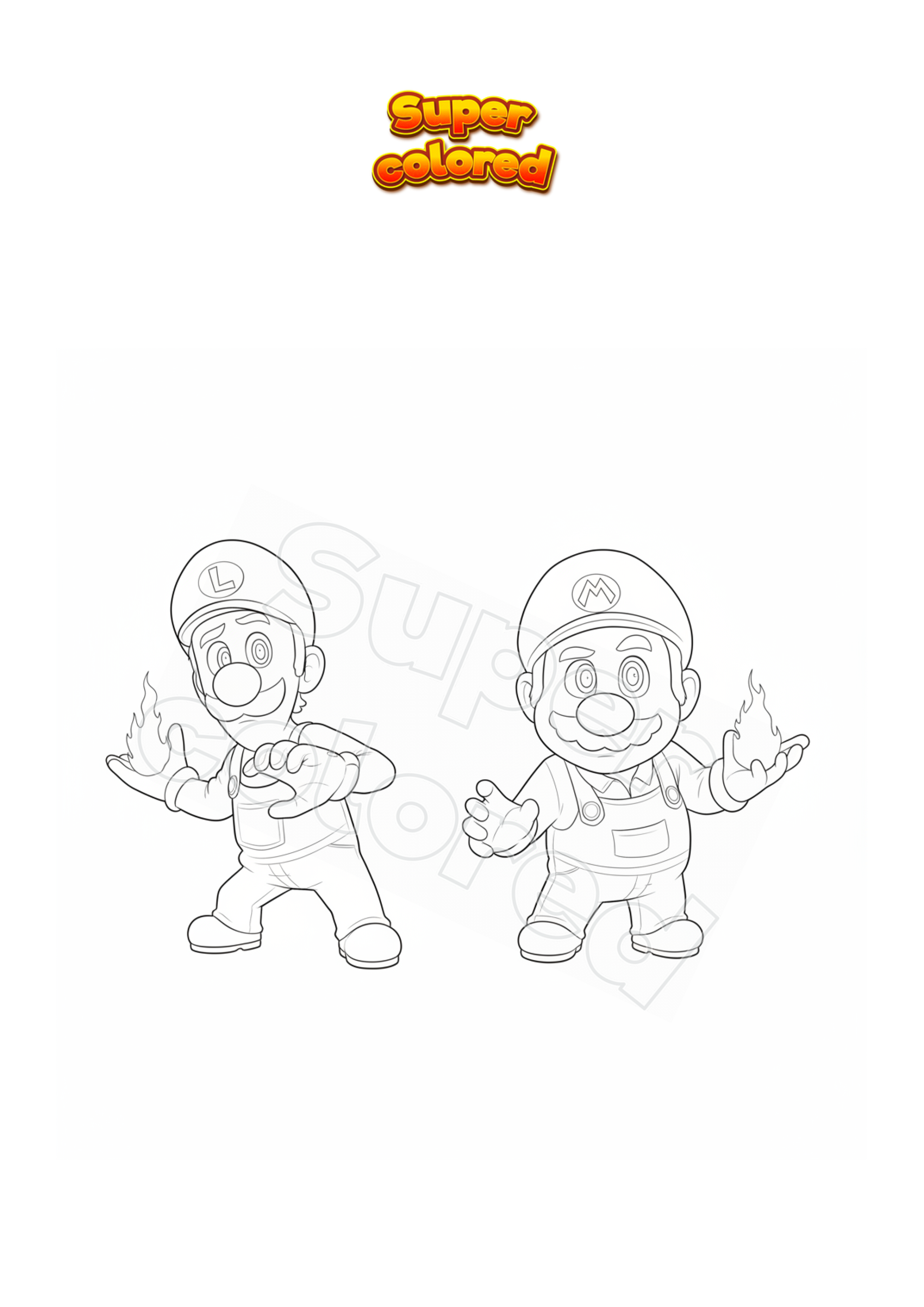 Dibujo para colorear Mario y Luigi con manos en llamas