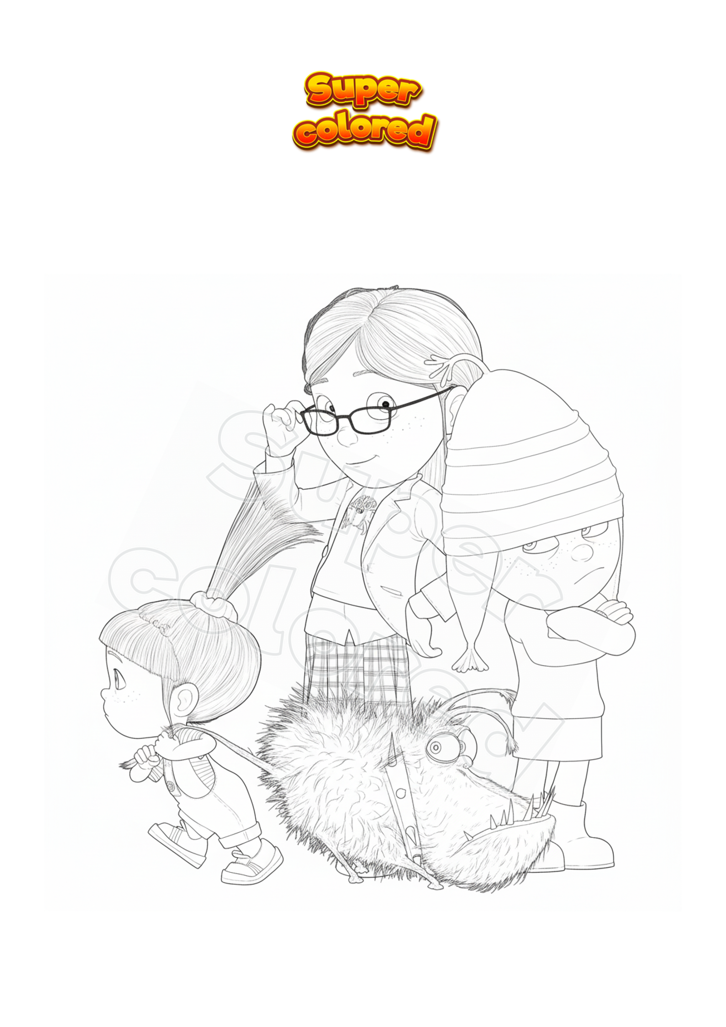Dibujo para colorear Mi villano favorito: Los niños con el perro
