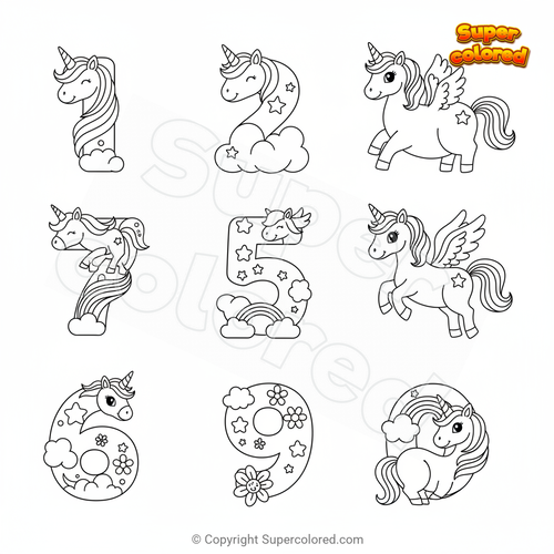Dibujo para colorear Números de unicornio