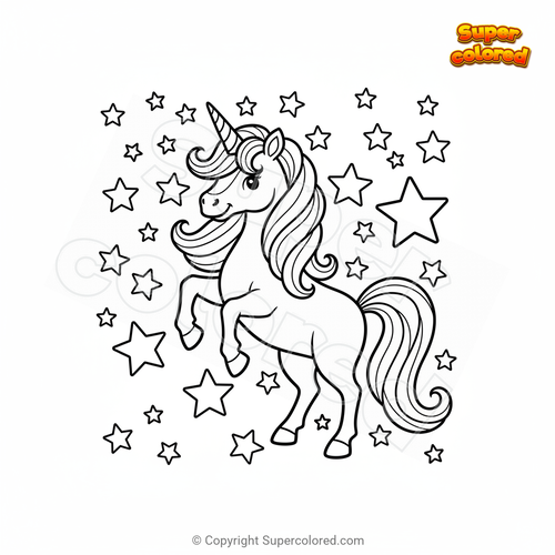 Dibujo para colorear Unicornio con estrellas