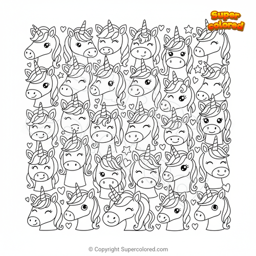 Coloriage Beaucoup d'émojis de licorne