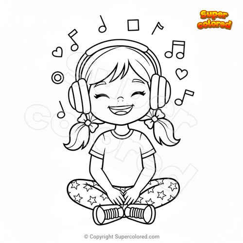 Coloriage Fille écoutant de la musique