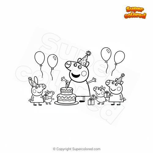 Coloriage L'anniversaire de Peppa Pig