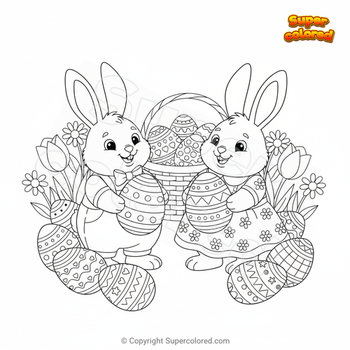 Coloriage Lapins de Pâques avec des oeufs