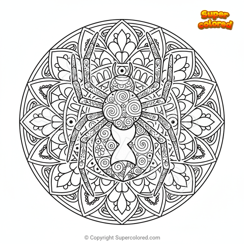 Coloriage Mandala araignée veuve noire Zentangle