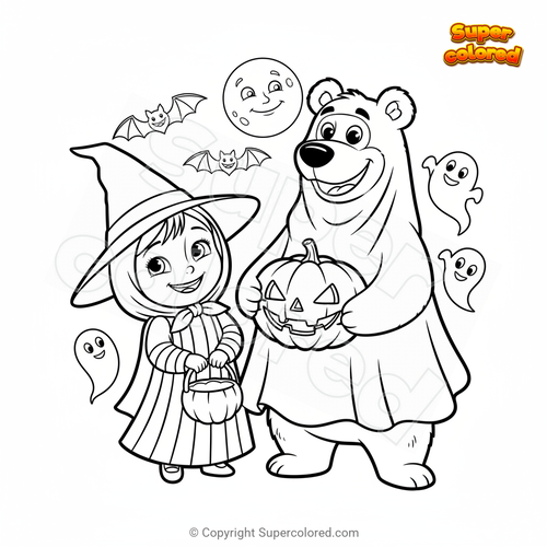 Coloriage Masha et Michka à Halloween