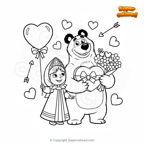 Coloriage Masha et Michka à la Saint-Valentin