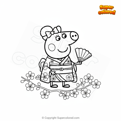 Coloriage Peppa Pig japonaise
