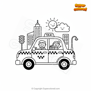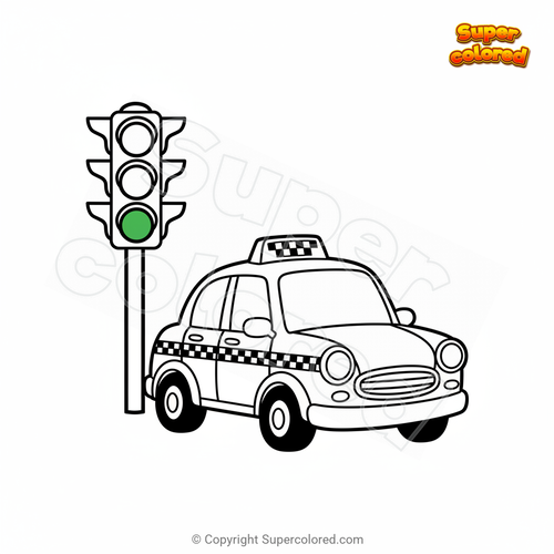 Coloriage Taxi aux feux de circulation