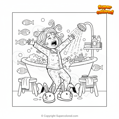 Disegno da colorare Bambina che non vuole fare il bagnetto