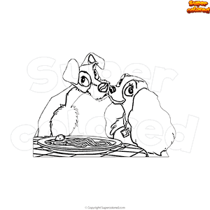 Lilli e il vagabondo mangiano spaghetti