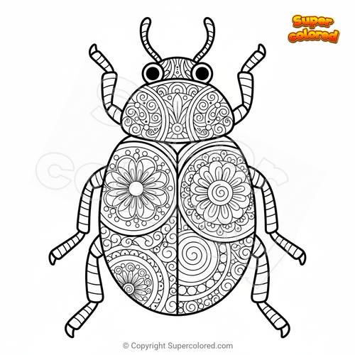 Disegno da colorare Coleottero Mandala Zentangle