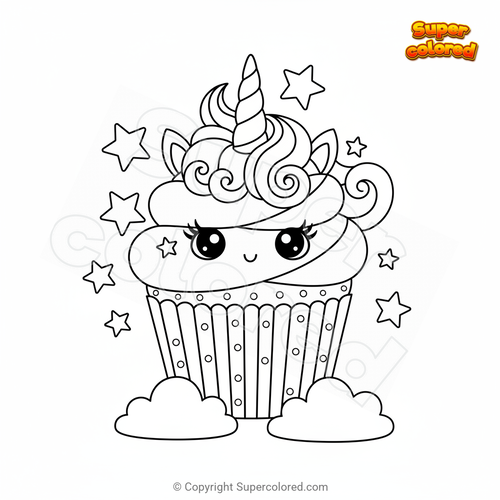 Disegno da colorare Cupcake unicorno con stelle